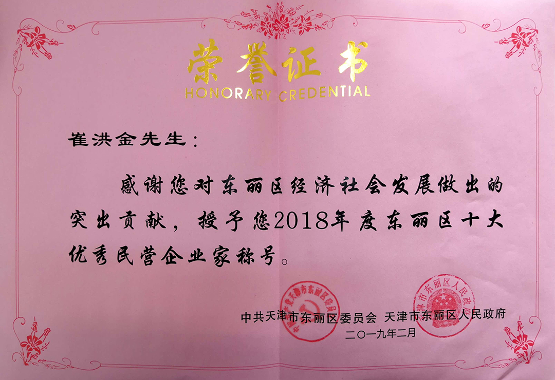 2018年度東麗區十大優(yōu)秀民營(yíng)企業(yè)家