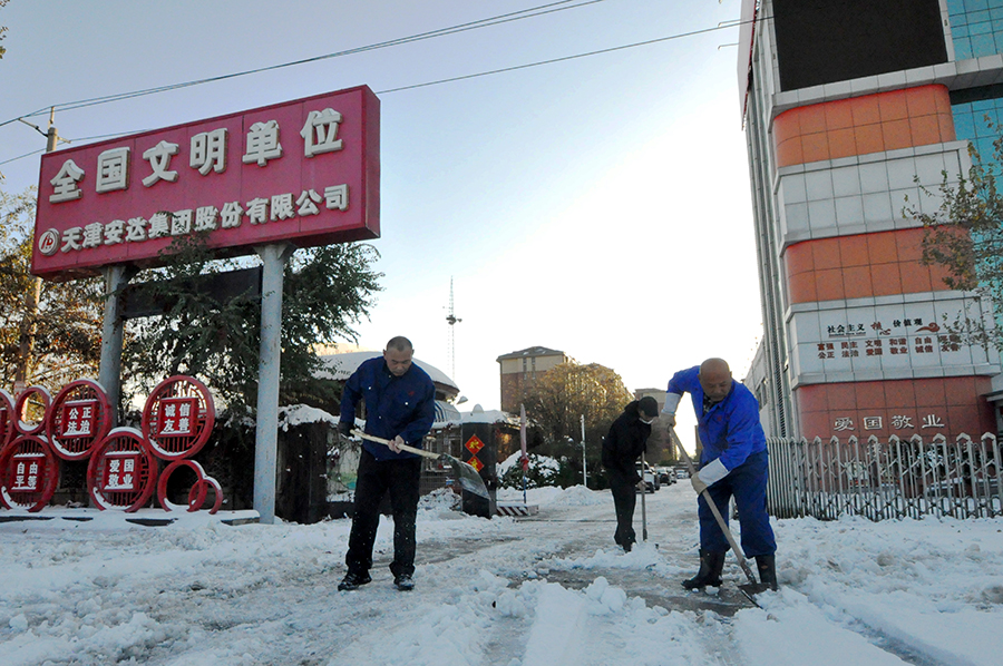 09日2021-1111月7日,天津市迎來(lái)今冬首場(chǎng)強降雪。據天津市氣象臺發(fā)布信息,降雪量已達暴雪級別。降雪過(guò)后,集團各廠(chǎng)區道路都被厚厚的積雪所覆蓋,車(chē)輛行駛緩慢,行人步履蹣跚,厚厚的積雪給行人和過(guò)往車(chē)輛造成極大的不便和安全隱患。為保障廣大職工的出行安全,11月8日一大早,各單位員工在相關(guān)領(lǐng)導帶領(lǐng)下,手拿鐵鍬、...[查看詳情]