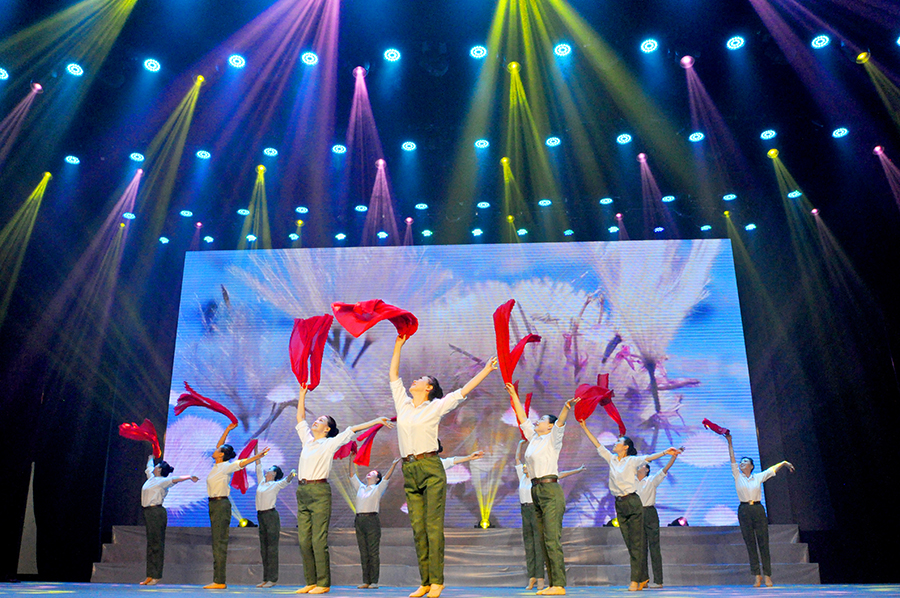 整場(chǎng)演出在《南湖的船黨的搖籃》歌舞演唱中拉開(kāi)帷幕,氣勢渾厚的歌聲、簡(jiǎn)單樸實(shí)的語(yǔ)言唱出了人民群眾對中國共產(chǎn)黨的深情和厚愛(ài)。隨后,詩(shī)朗誦《頌歌獻給偉大的黨》舞蹈、《映山紅》、原唱歌曲《我是老兵》等節目精彩紛呈,在《我是老兵》節目后主持人特別邀請東麗區十位優(yōu)秀退役軍人代表上臺,介紹他們的優(yōu)秀事跡并接受少先隊員們的獻花。臺下幾百名退役軍人代表觀(guān)看演出,對十位優(yōu)秀代表事跡深受鼓舞,勵志傳承紅色基因,爭做時(shí)代新人,喜迎建黨100周年。