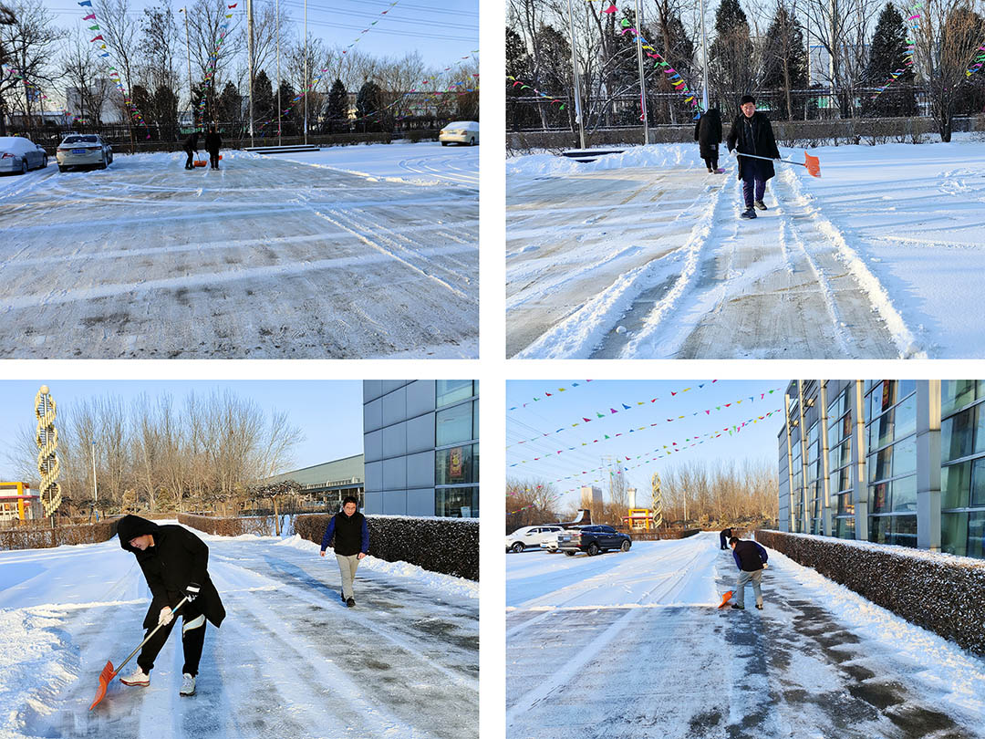 213日,虎年首場(chǎng)降雪如約而至,洋洋灑灑的雪花很快將安達集團各廠(chǎng)院路面覆蓋。集團各子公司以雪為令,立即行動(dòng)起來(lái)。各單位員工在相關(guān)領(lǐng)導帶領(lǐng)下,手拿鐵鍬、掃帚、簸箕等工具,對辦公樓門(mén)口和廠(chǎng)區內重要點(diǎn)位、路面進(jìn)行積雪大清掃。積雪的清除,為員工和車(chē)輛出入提供了安全保障。寒風(fēng)襲襲,盡管大家凍得手腳冰涼,但全體員工齊心協(xié)作,相互配合,一派熱火朝天的除雪場(chǎng)景,甚是鼓舞人心。