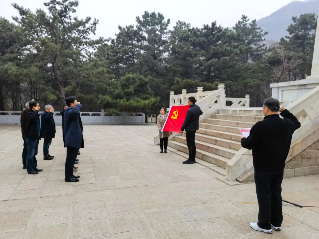 在烈士陵園,協(xié)會(huì )同志手持花圈從山下緩步走到烈士紀念碑前,崔洪金同志隨同祭掃隊伍逐步前進(jìn),在烈士紀念碑前,全體人員默哀一分鐘后,敬獻花圈,表達了對革命先烈的深切哀悼和崇高敬意。隨后全體黨員在碑前列隊整齊,向黨旗宣誓,重溫入黨誓詞。