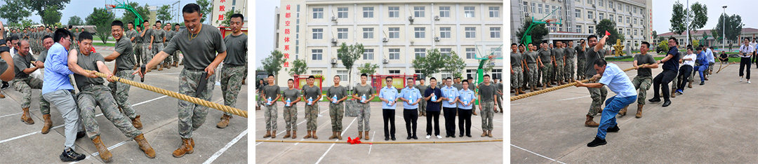 參觀(guān)結束后,大家集中前往訓練場(chǎng),實(shí)地感受軍隊訓練和裝備展示。官兵們精湛的軍事技能、昂揚的精神風(fēng)貌以及先進(jìn)的裝備,讓大家直觀(guān)地領(lǐng)略到了人民軍隊的強大實(shí)力,也更加深刻地理解了 “強軍夢(mèng)” 的內涵。隨后,黨建互聯(lián)共建單位選派代表與部隊官兵聯(lián)合開(kāi)展了拔河比賽互動(dòng)游戲。賽場(chǎng)上,雙方隊員奮力拼搏,場(chǎng)外加油聲、吶喊聲此起彼伏,在歡樂(lè )的氛圍中進(jìn)一步拉近了軍民距離,增強了軍民感情。